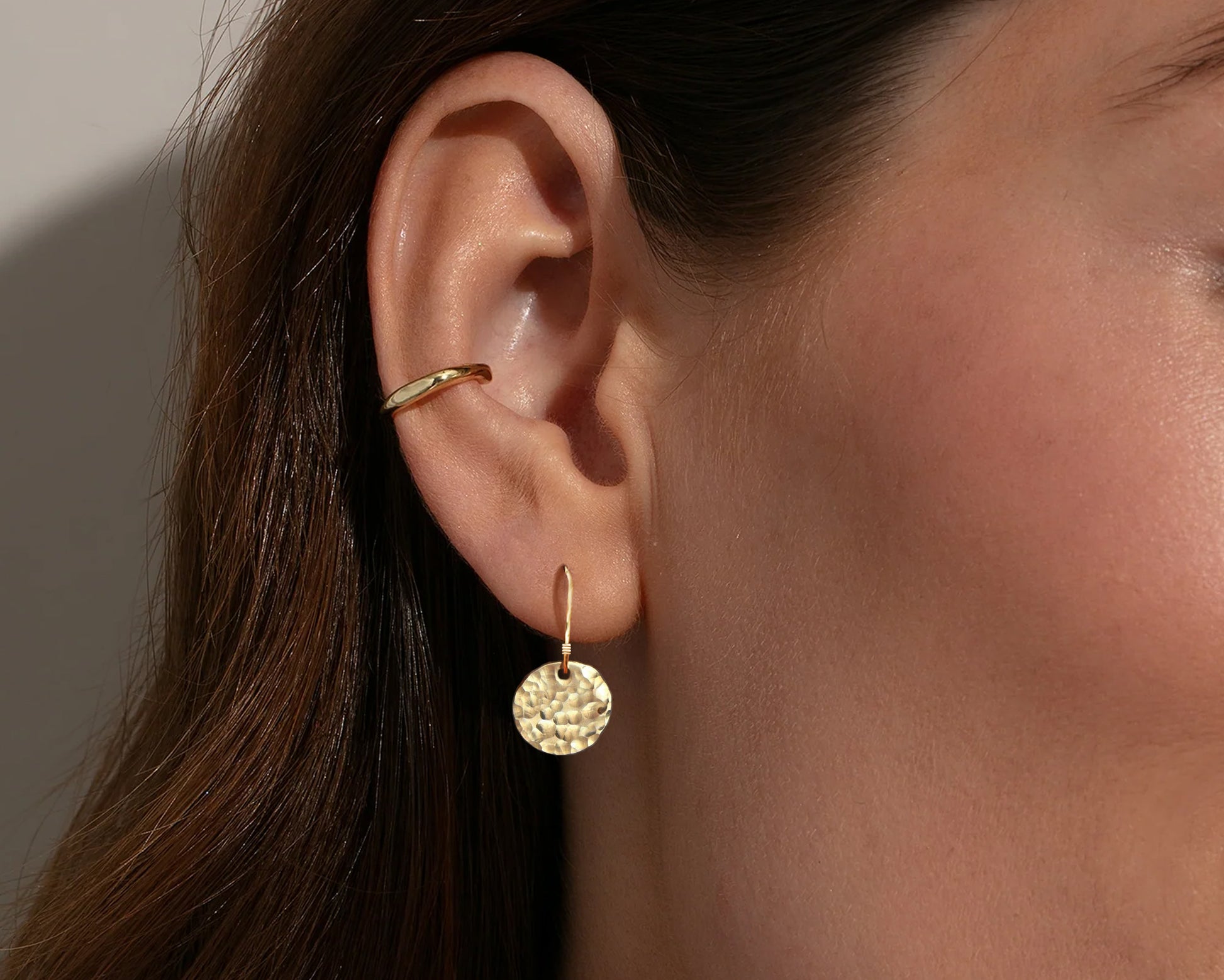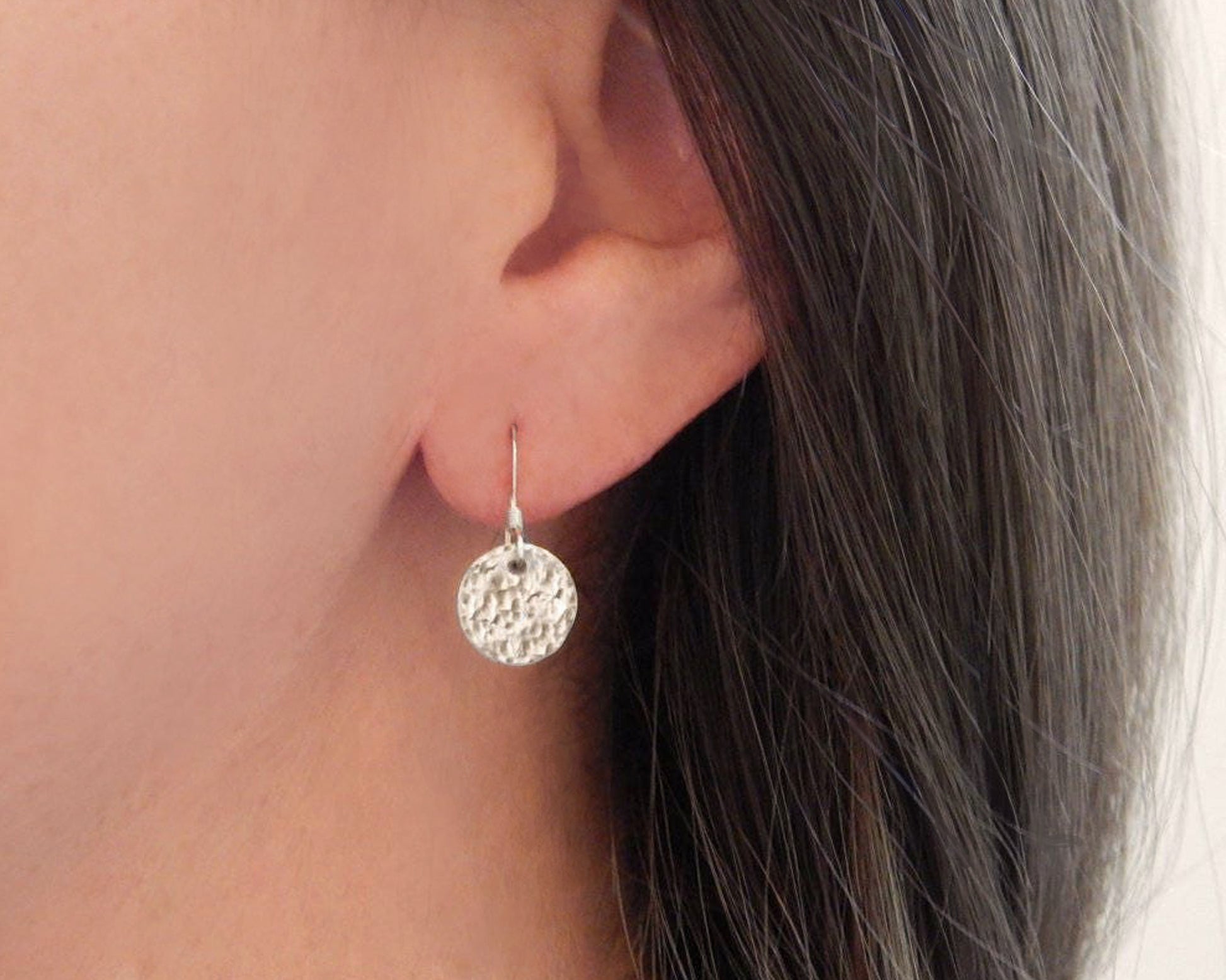 Our earrings are made with hypoallergenic materials and are made to order in either sterling silver or gold-filled. The discs are hammered by hand for the perfect finish for every pair!